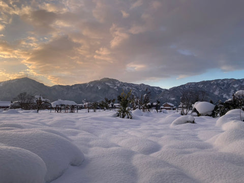 勝山市は、厳しくも豊かな自然に包まれた場所。すべてを覆い隠す雪、やたらと降る雨、暴れる川、肌にまとわりつく湿気、どれも織物を作るには欠かせず、私たちはこの地で、この自然とともに、糸と物語を紡ぎながら生きてきました。